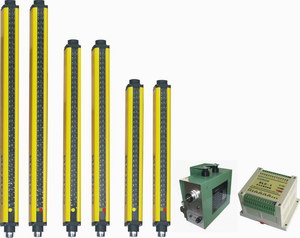 光電安全裝置通過發(fā)射紅外線,產(chǎn)生保護(hù)光幕,當(dāng)光幕被遮擋時,裝置發(fā)出遮光信號,控制具有潛在危險的機(jī)械設(shè)備停止工作,避免發(fā)生安全事故。