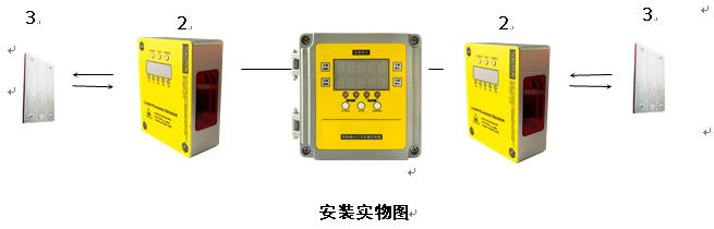 1、激光傳感器安裝在天車兩側(cè),控制器主機(jī)安裝在駕駛室內(nèi)。